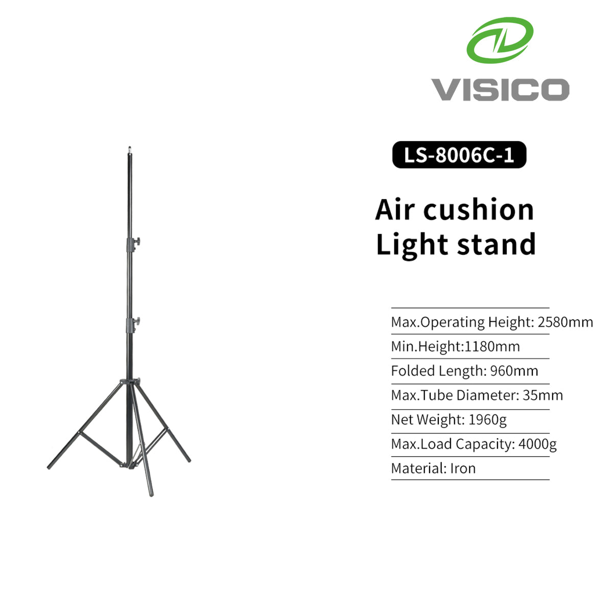 Visico True Professional 2.6m Air Cushioned Light Stand Black LS-8006C-1